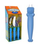 Set omposto da un coltello, una forchetta e un cucchiaio in acciaio inox con punte arrotondate e impugnatura in Marfran Streif (materiale atossico, gommoso