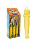 Set omposto da un coltello, una forchetta e un cucchiaio in acciaio inox con punte arrotondate e impugnatura in Marfran Streif (materiale atossico, gommoso