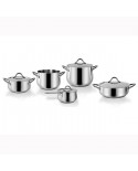 Composta da: Pentola ø cm 18 - Pentola ø cm 22 - Casseruola ø cm 18 - Casseruola ø cm 22 - Casseruola Manico Lungo ø cm 14 - Tegame ø cm 24 - Bollilatte ø cm 12 - Coperchio ø cm 14/18/22/24.