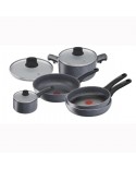 Il set comprende: 1 casseruola a un manico diametro 18 cm, 1 casseruola a due manici 24 cm, 1 padella 24 cm, 1 padella 28 cm, 1 wok da 28 cm, 1 coperchio 18 cm, 1 coperchio in vetro da 24 cm e 1 coperchio da 28 cm.