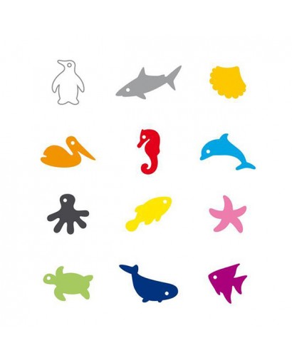 12 segnabicchieri in silicone colorati a forma di pesciolino, si attaccano ad ogni superficie liscia grazie alla pratica ventosa.