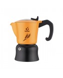 Caffettiera in alluminio con manico, pomolo in bachelite e coperchio in policarbonato con oblò trasparente