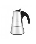 Caffettiera realizzata in alluminio e dotata di pomolo arricchito da un inserto in metallo.