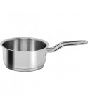 Casseruola a un manico in acciaio inox riciclabile con triplo fondo.