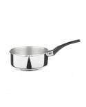 Casseruola con becco in acciaio inox con manico in bachelite di colore nero.