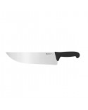 Coltello da cucina con lama satinata in acciaio inox e manico nero, ergonomico in polipropilene e gomma termoplastica.
