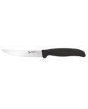 Coltello da cucina con lama satinata in acciaio inox e manico nero, ergonomico in polipropilene e gomma termoplastica.