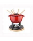 rechaud in ghisa (pasta NON inclusa), 6 forchette in acciaio inox, 1 bruciatore per pasta combustibile e 1 ricettario con istruzioni per l`uso.