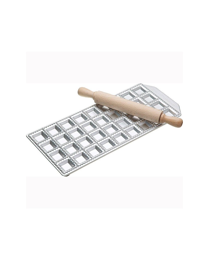 Imperia Raviolatore quadro 36 posti con rullo.  Raviolatore quadro in alluminio 36 posti con rullo in legno.