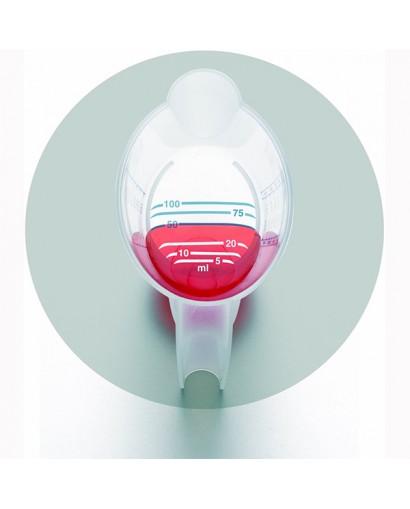 Pratico bicchiere con 3 scale graduate a partire da 5 ml.