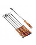Eva 6 forchette fonduta. Confezione da 6 forchette per fonduta in acciaio inox con manico in legno naturale. Lunghezza: 23 cm.