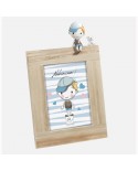 Cornice per foto singola in legno chiaro, nella parte alta della cornice troviamo una bambina con un gattino.