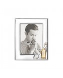 Cornice per foto singola con placca per ricorrenza comunione in argento laminato colorato e retro in legno.