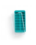 Stampo per 18 cubetti di ghiaccio in plastica resistente con fondo flessibile: basta premere leggermente e ogni cubetto uscirà.