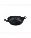 con manico in bakelite ergonomico e anti-scottatura e corpo in alluminio con rivestimento antiaderente di altissimo spessore.