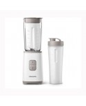 Dotato di doppia lama in acciaio inox e bicchiere in plastica.