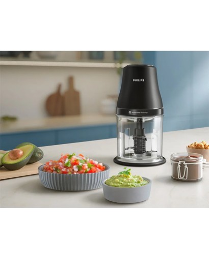 Dotato di doppia lama in acciaio inox e bicchiere in plastica.