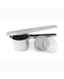 Schiacciapatate senza fori laterali in acciaio inox con funzionamento a pressione.
