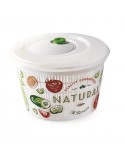 Pratica e versatile centrifuga e insalatiera con bordo con chiusura di sicurezza e pomello salva spazio.